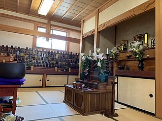 本尊釈迦牟尼仏の他、本堂西側に厄除け延命地蔵尊があります。 昔より信仰されています。大間より奥に入ると開山堂兼位牌堂があり、お寺の開山様と檀家さんのお位牌を安置しています。