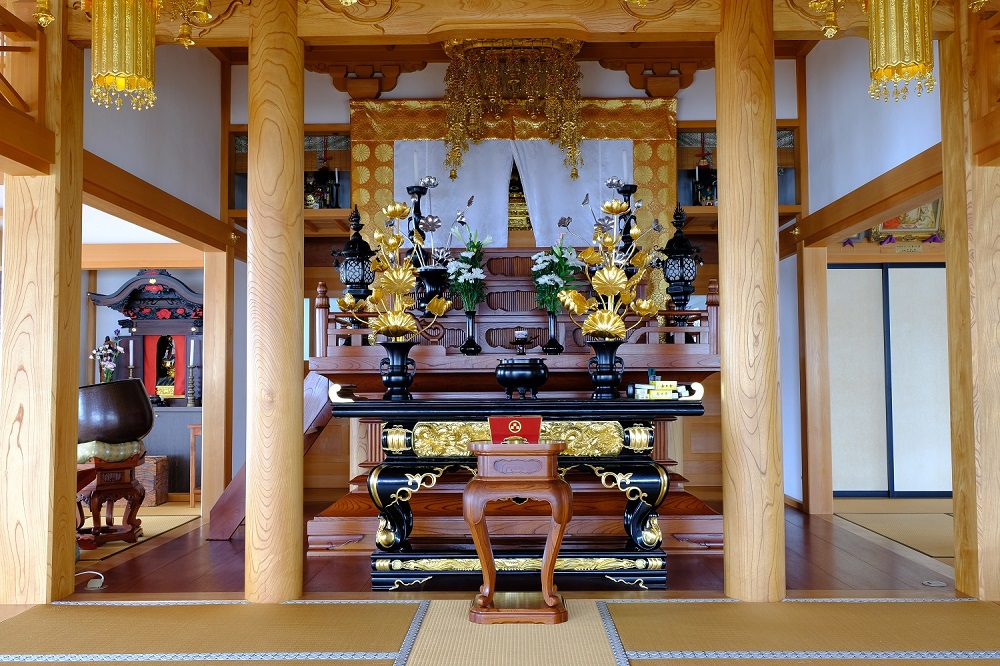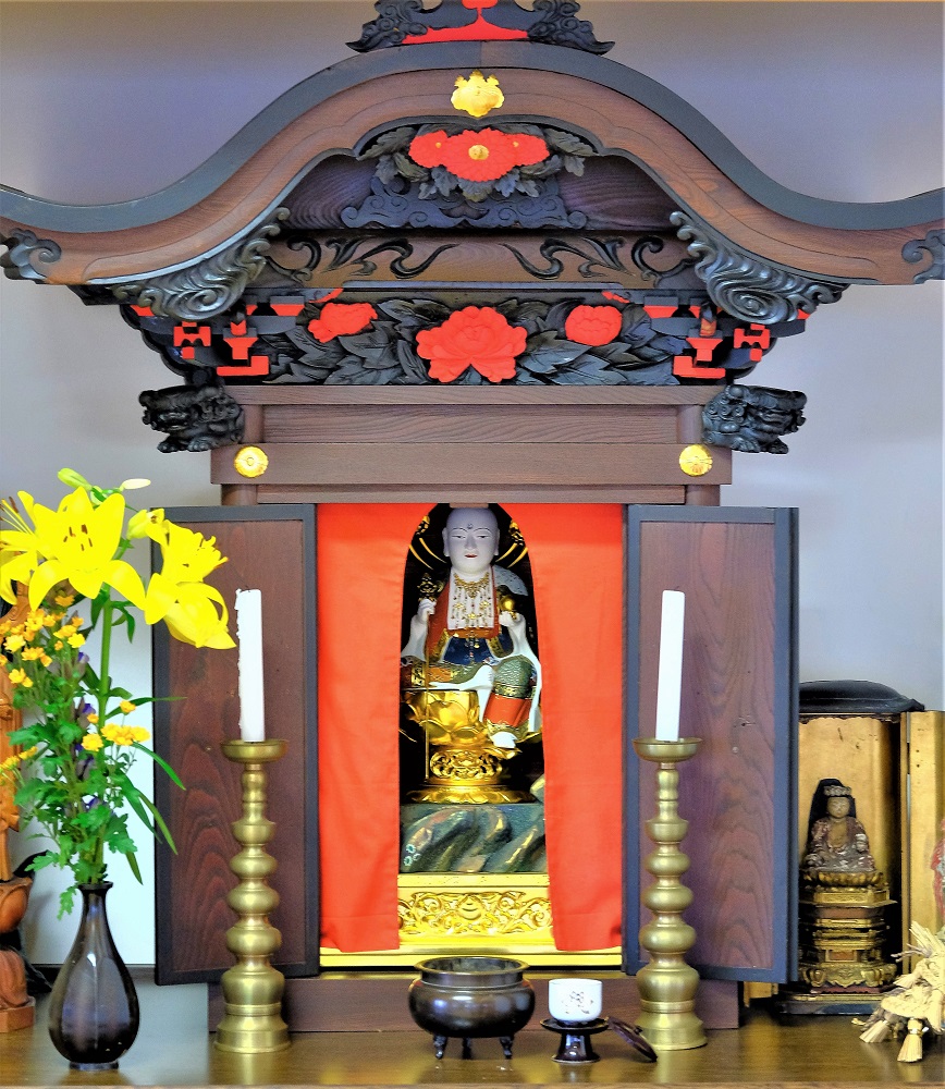 本尊釈迦牟尼仏の他、本堂西側に厄除け延命地蔵尊があります。 昔より信仰されています。大間より奥に入ると開山堂兼位牌堂があり、お寺の開山様と檀家さんのお位牌を安置しています。