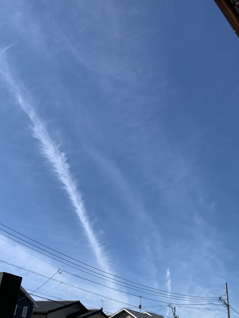 空と飛行機雲もきれいでした。