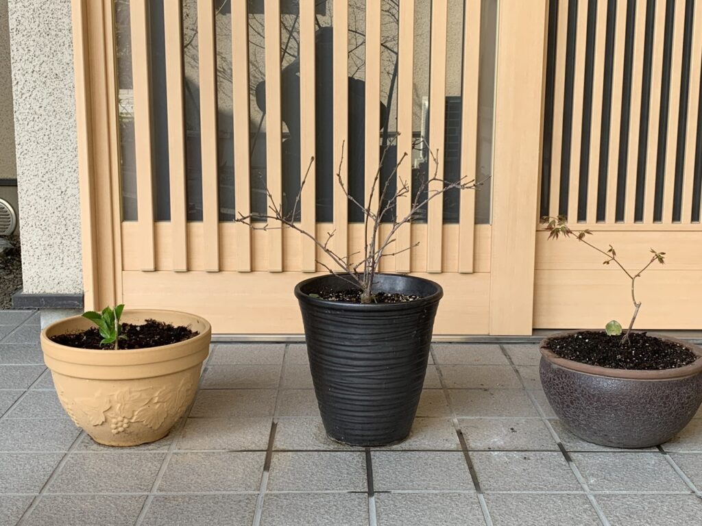 真ん中は蝋梅(まだ花が咲きません。葉が出てきました。)。