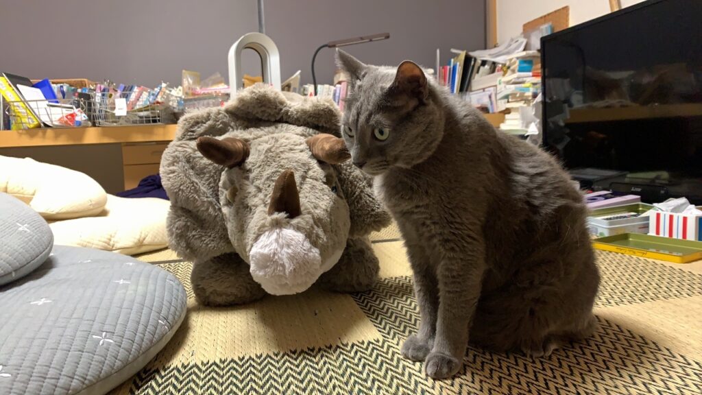 太郎はトリケラトプスのトプちゃんと一緒です。