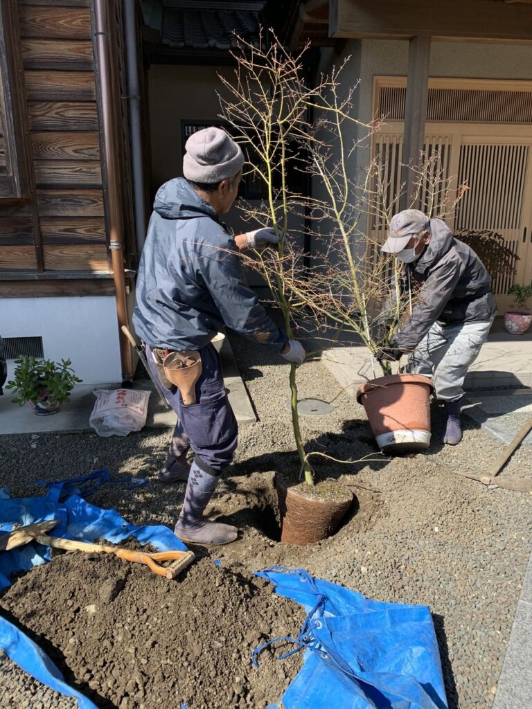 以前よりもみじを地面に植えたいと思っておりましたが、やっと総代さんのokが出て、植え替えることが出来ました。