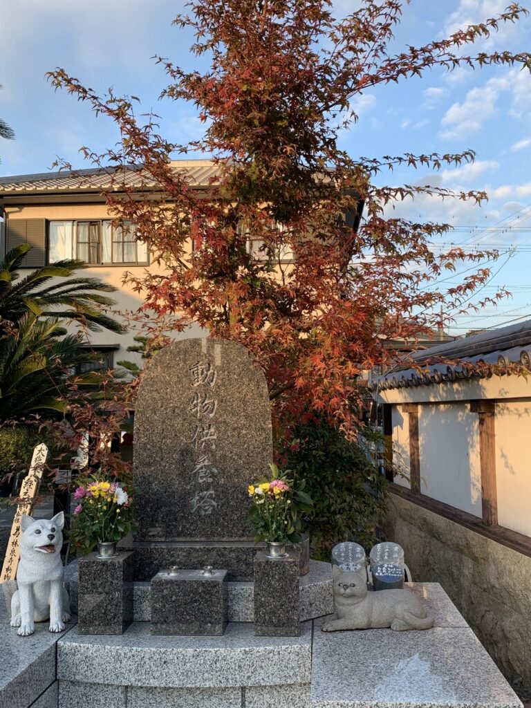 動物供養塔に箔をつけているのが、10年のもみじ(一番若い)です。