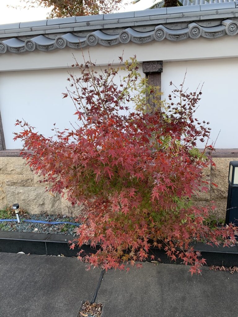 今年の夏があつすぎたのと、水が少なかったのでもみじが枯れ気味になってしまったのですが、この頃、少し赤く紅葉しました。