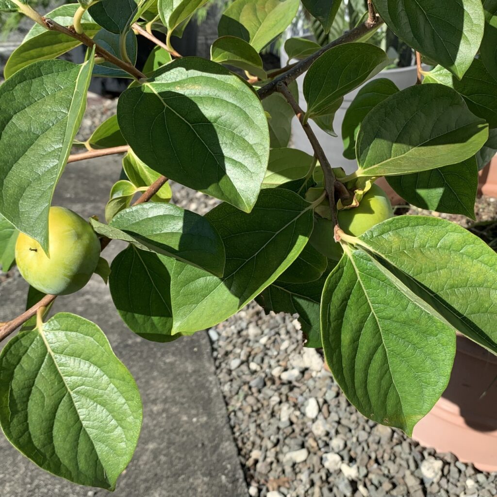 小さいけれど、2つも柿の実がなっています。