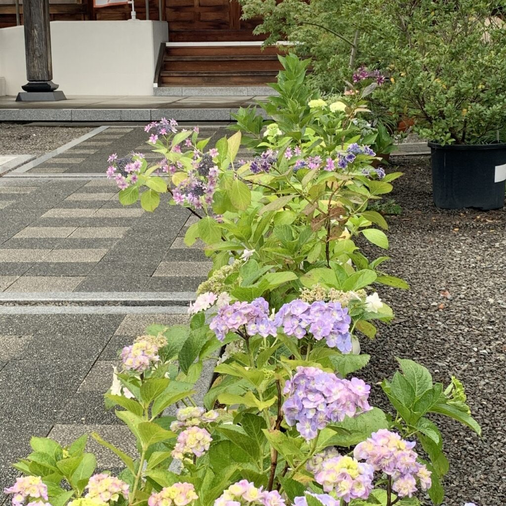 6月の本堂前の花、プランターの畑